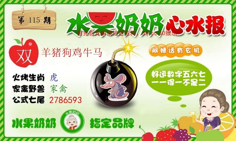 港彩六合【三期必开】 水果奶奶【五肖五码